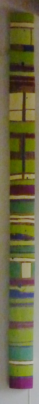 3574- tinta acrilica sobre bambu 13 x 13 x 191 cm.